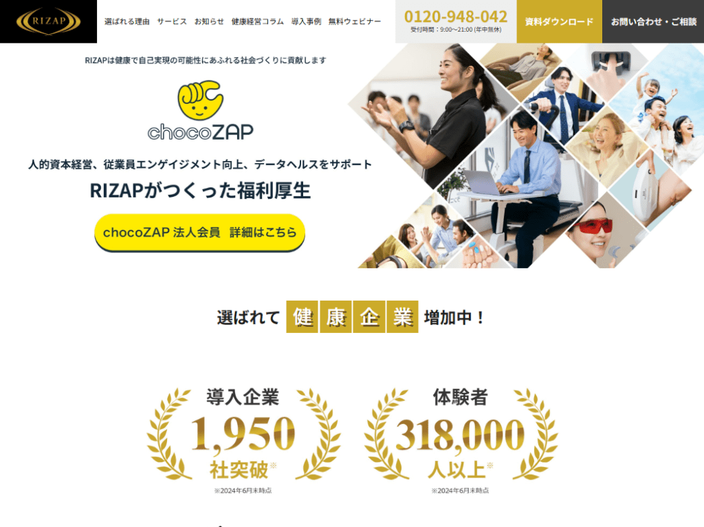 | ② RIZAP(ライザップ) | 専属トレーナーによるパーソナル指導。短期集中型 | 大手企業を中心に多数 | 非公開 | 体力強化やボディメイク重視の企業 |